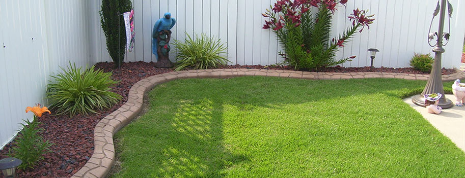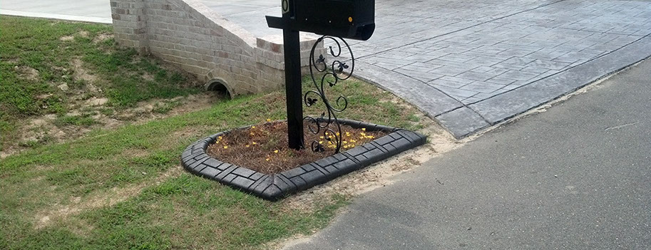 Our custom designed continuous concrete landscape edging is available in a variety of colors and styles. They're also great for your commercial concrete curbing of parking lots as well as for beautifying your landscape. They come in many different designs such as brick, stone and flagstone and are constructed from colored concrete.